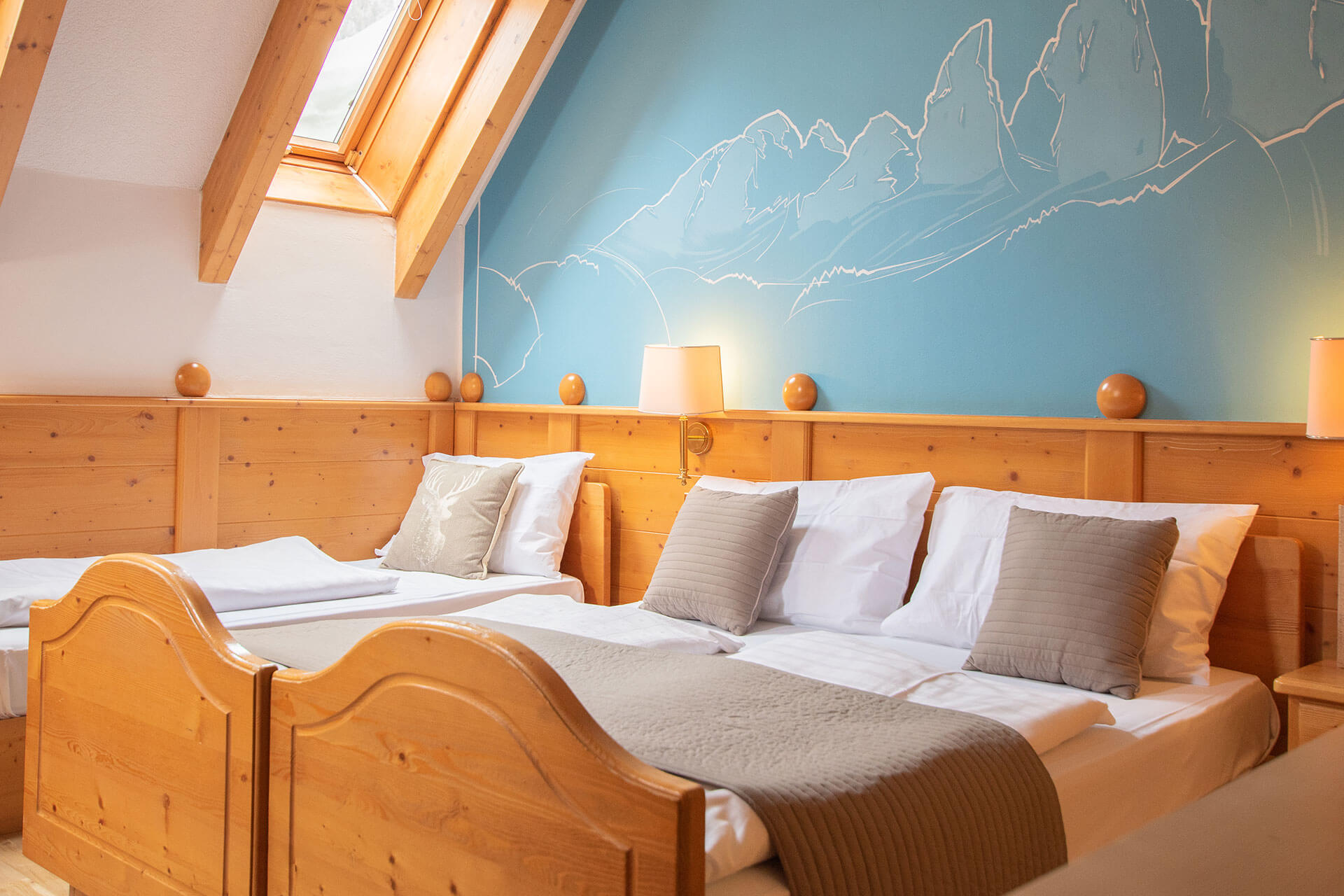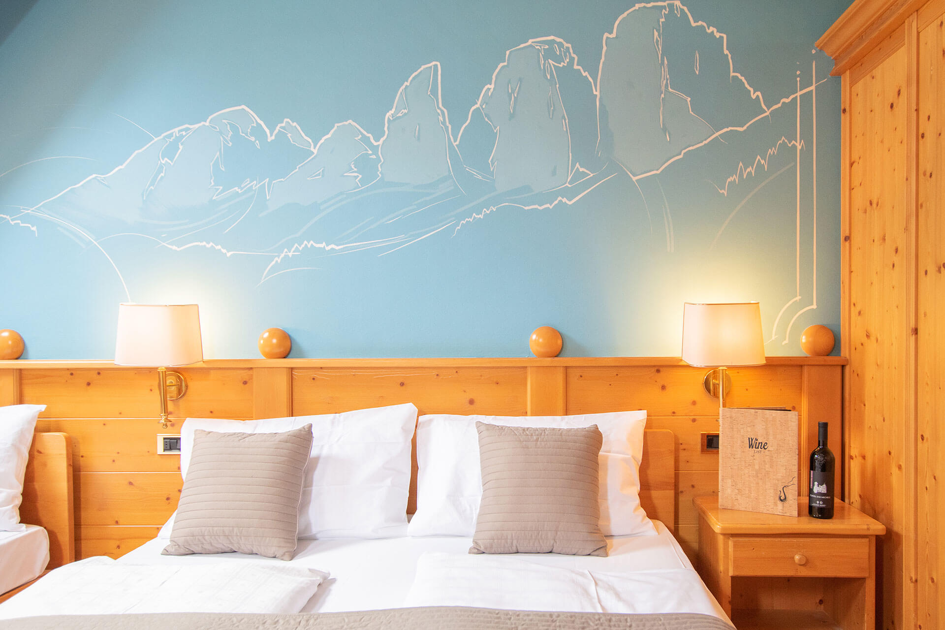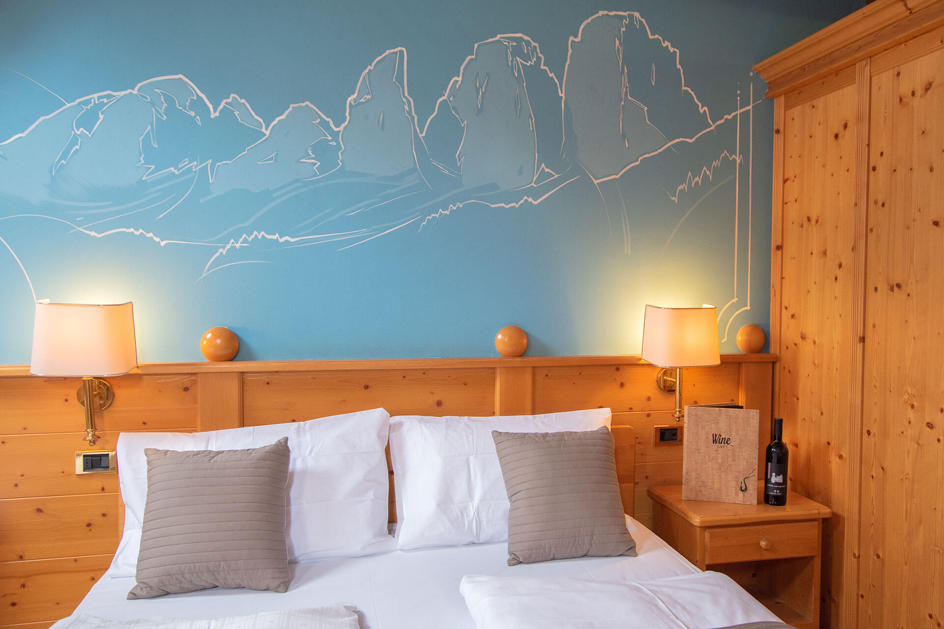 Nell’arredare le nostre suites abbiamo pensato a voi: spazio, comfort e luce sapientemente miscelati a strutture materiche fatte di legno e tessuti di qualità; broccati tirolesi incorniciano ampie finestre con vista sul Catinaccio e Sasso Lungo, permettendo alla luce di accarezzare gli arredi in notevole legno massiccio. Ogni colore ed ogni essenza rivelano quanto di più tipico e confortevole potessimo mai realizzare per te.